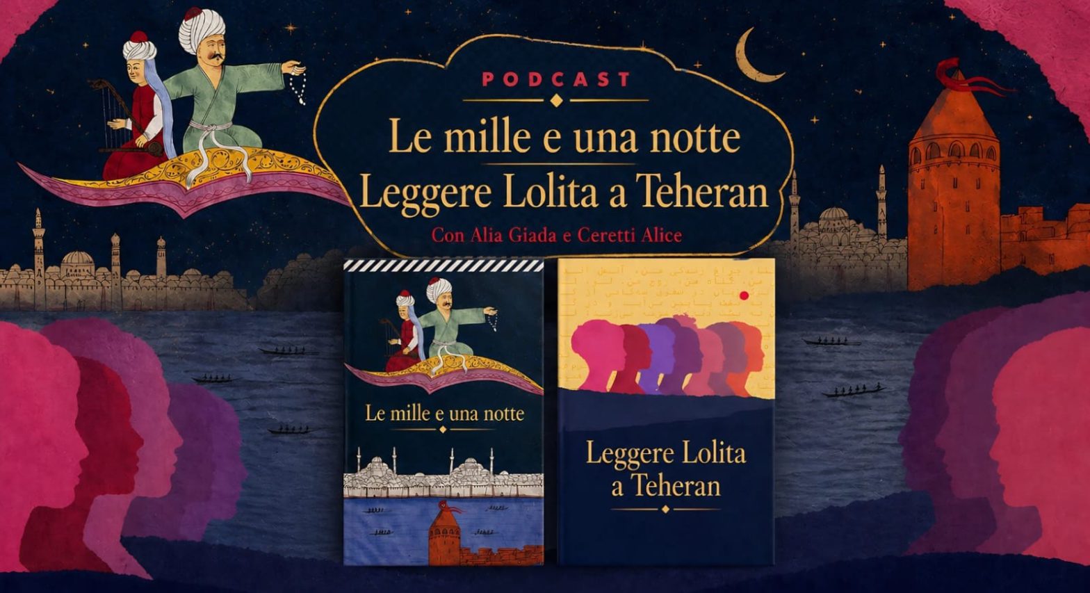 Per questo progetto abbiamo deciso di realizzare un podcast che mettesse a confronto i libri Leggere Lolita a Teheran e Le mille e una notte, esplorandone differenze e punti di contatto per riflettere sulla condizione femminile e sul potere salvifico della narrazione in un contesto oppressivo.